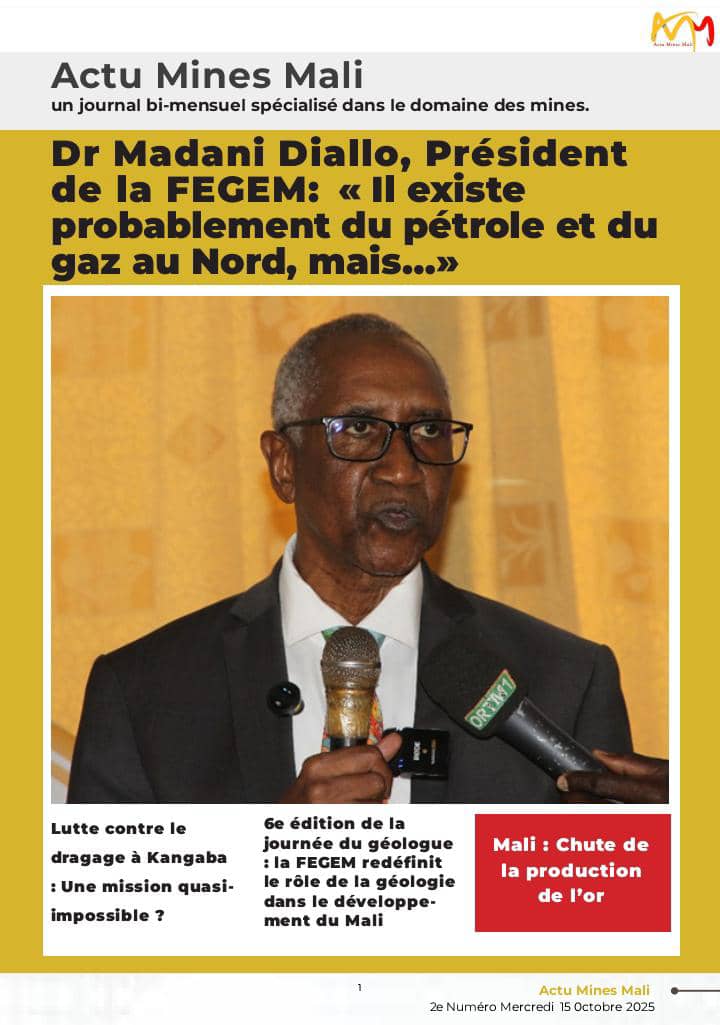 Home / Actualité / Bimensuel Actu Mines Mali – 2ème NuméroActualitéBimensuel Actu Mines Mali – 2ème Numérooctobre 15, 2025 Actu mines mali 2eme numeroTélécharger Share this ArticlePrevious ArticleGestion du site d’orpaillage de Machogo : un cas d’écolebouba Kanoute Related Posts Dubaï, principale destination de l’or malien issu de l’orpaillage septembre 30, 2025 65e anniversaire de l’indépendance du Mali: Le président de la tr ... septembre 30, 2025 Bimensuel Actu Mines Mali – 1er Numéro septembre 26, 2025